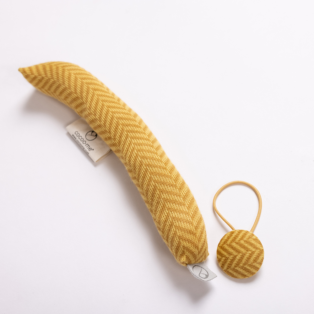 Die Baby-Nackenrolle eignet sich auch wunderbar als Greifwürmchen. Es animiert dein Baby zum Greifen und erinnert an die Nabelschnur im Babybauch.